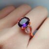 Embrace timeless elegance with our Mystical Amethyst Ring, featuring a stunning oval-cut amethyst set in rose gold. The intricate swirl design, accented with shimmering micro-pavé crystals, adds a touch of luxury and meaning to this spiritual accessory.